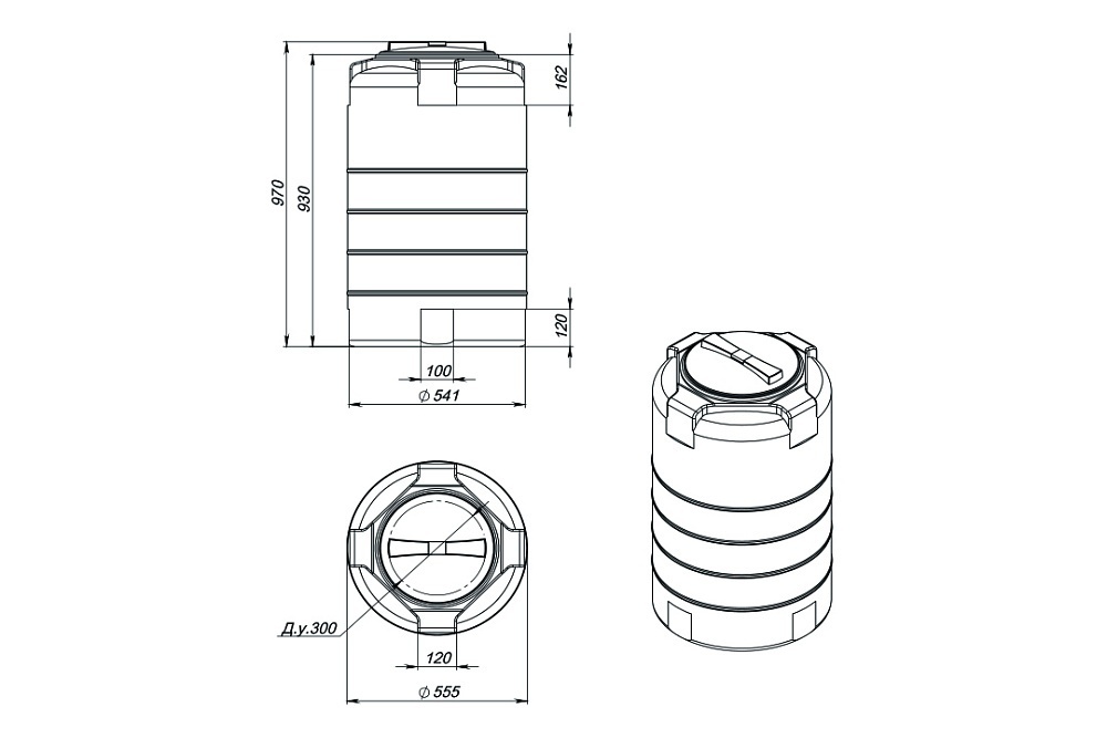 Вертикальная цилиндрическая бочка объемом 200 литровимеет максимально устойчивую конструкцию и усилена специальными горизонтальными ребрами жесткости.